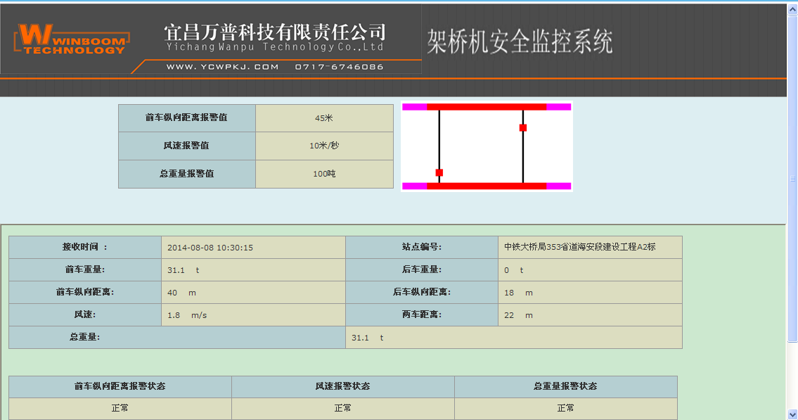 為了項(xiàng)目部相關(guān)負(fù)責(zé)人,集團(tuán)負(fù)責(zé)人,安全部門負(fù)責(zé)人能夠?qū)崟r(shí)了解現(xiàn)場設(shè)備運(yùn)行的狀況及施工情況,我公司為此臺(tái)架橋機(jī)量身定制了起重機(jī)遠(yuǎn)程安全監(jiān)控管理系統(tǒng)。