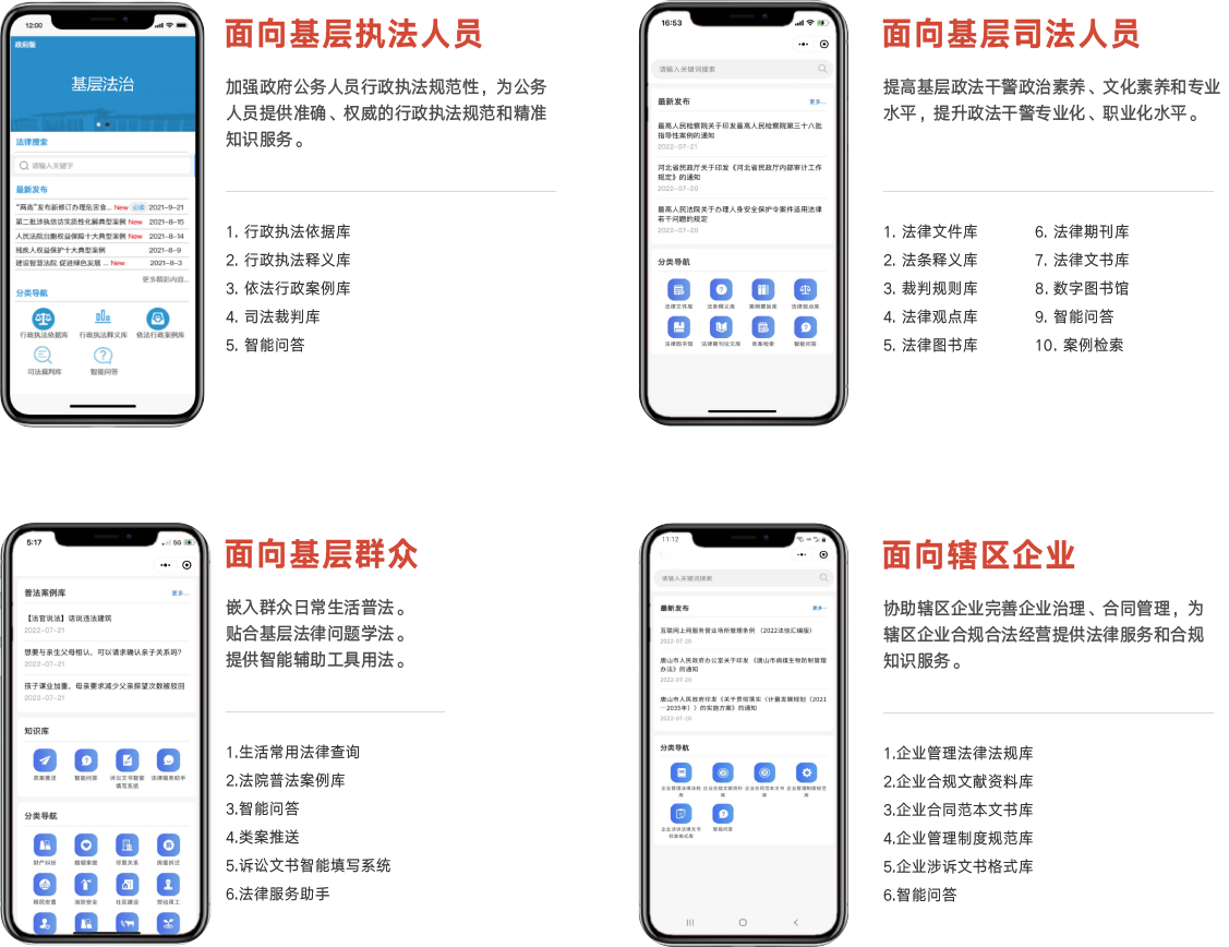 緊密貼合基層學(xué)法普法用法的實(shí)際需求面向基層執(zhí)法人員、基層司法人員、基層群眾及轄區(qū)企業(yè)