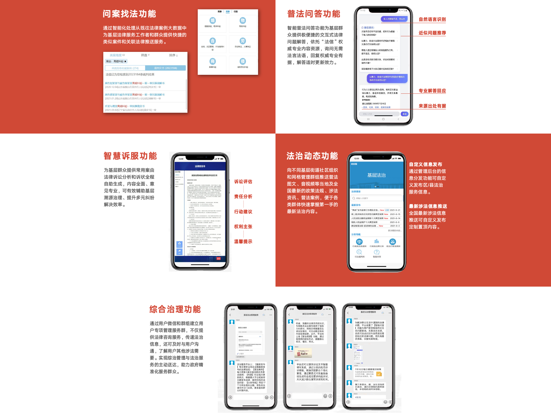 細(xì)分場景進(jìn)行法治服務(wù)和管理,通過精準(zhǔn)觸達(dá)和全員覆蓋為基層社會(huì)綜合治理提供強(qiáng)有力抓手。